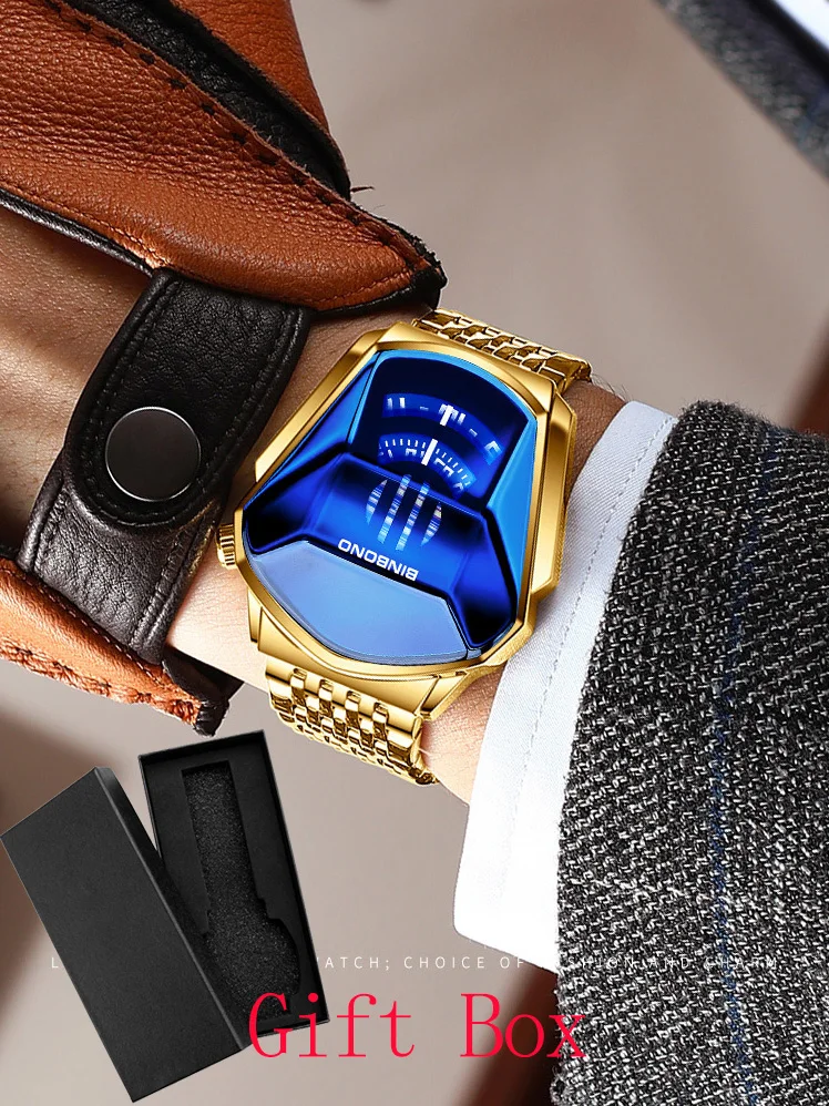 Name: Reloj Masculino de cuarzo dorado para hombre, locomotora, resistente al agua, con forma geométrica, 2020