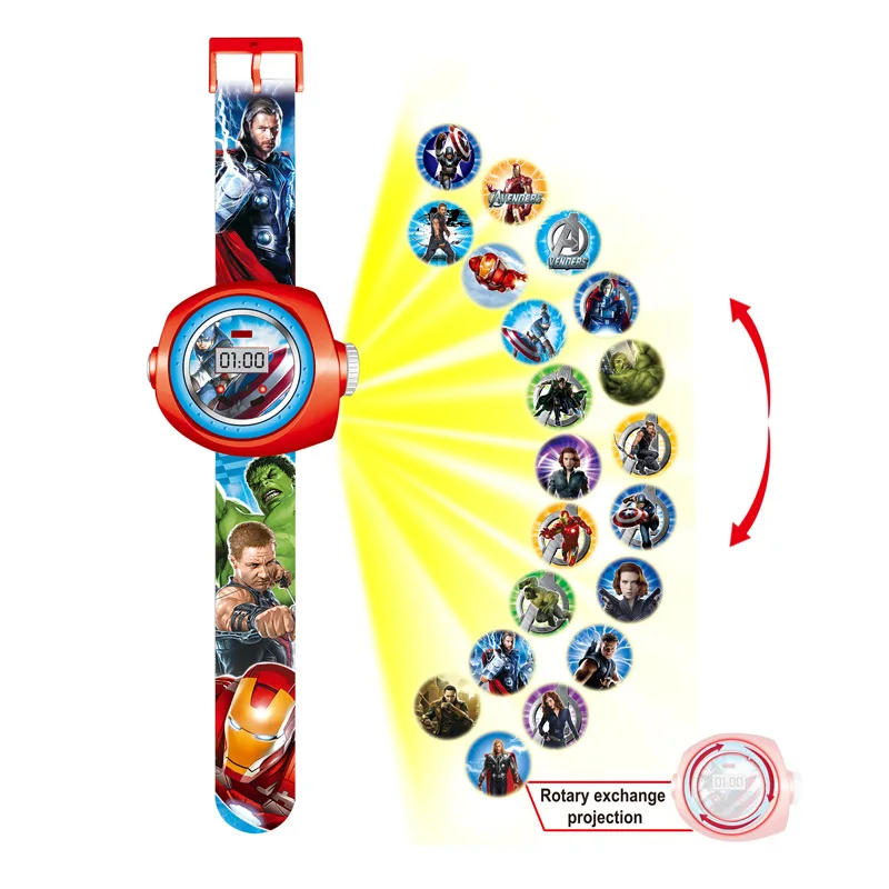 Name: Reloj digital con patrón de proyección de los vengadores, Spiderman, iron Man, Hulk, 20, dibujos animados, electrónica, LED, juguete para niños y niñas